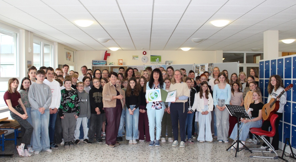Am Dienstag, den 14. April 2026 überreichte Frau Ulrike Singer vom Klimabündnis OÖ unserer Schule im Rahmen einer kleinen Feier die „Wir sind Klimabündnis“- Tafel.