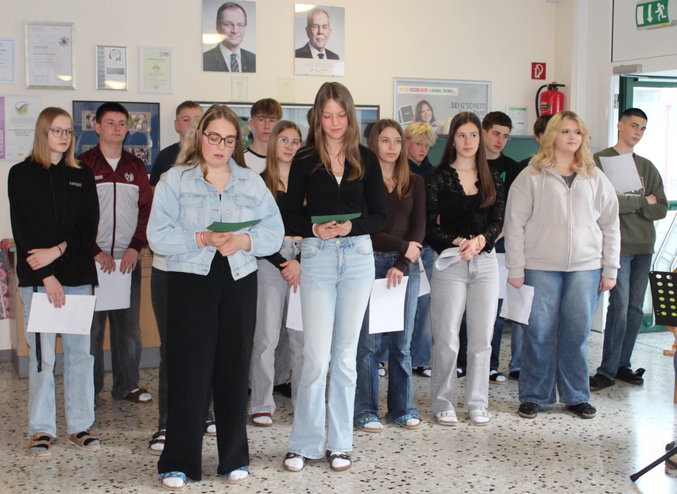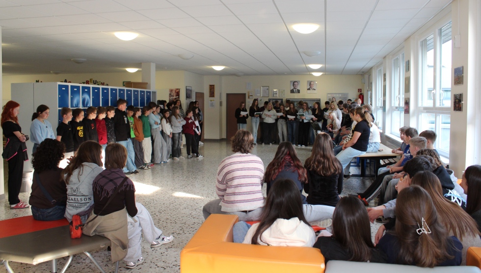 Am 20. April 2026 startete der Schultag mit einer Begrüßung unserer spanischen Gäste im Rahmen des Erasmusprogramms. 12 Mädchen und zwei Buben waren am Sonntag mit zwei Lehrerinnen aus Bilbao angereist. Sie werden in Kopfing und Umgebung eine abwechslungsreiche Woche mit den Schülerinnen und Schülern der 4. Klasse verbringen, die schon im Jänner in Bilbao zu Gast waren.